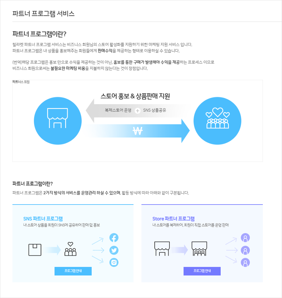 파트너 프로그램이란 비즈니스 회원님의 스토어 활성화를 지원하기 위한 마케팅 지원 서비스 입니다.
