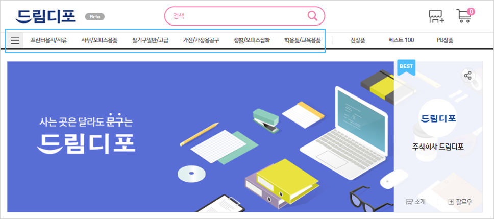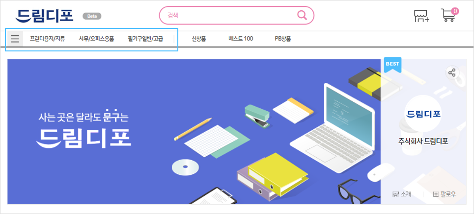 카테고리 메뉴에서 노출을 원하시는 항목을 사용자 카테고리로 직접 등록하실 수 있으며,
