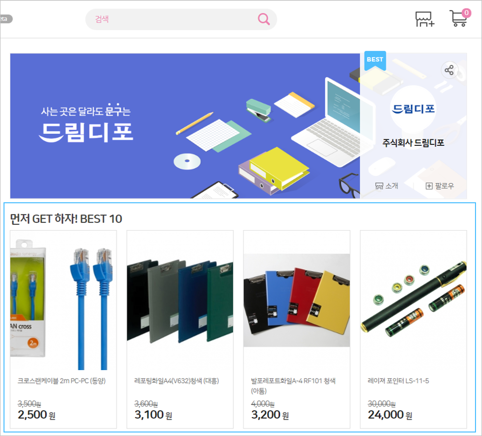 아래는 프로모션 메뉴가 스토어 프론트에 반영된 모습입니다.